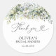 Eucalyptus Floral Bridal Shower Classic Round Pegatina. Este elegante y elegante Wedding Shower Invitation presenta una preciosa coloración de agua pintada a mano con Eucalyptus. Encontrar elementos coincidentes en la Acuarela Eucalyptus Floral Greenery_HB2.