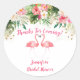 Pegatina Redonda Ducha tropical de novias Flamingo