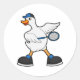 Pegatina Redonda Duck at Tennis with Tennis racket & Cap