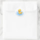 Un pequeño pato amarillo muy dulce flotando en el agua.
