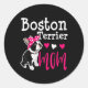 Pegatina Redonda Dueña de madre de perro de Boston Terrier es graci