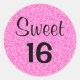 Pegatina Redonda Dulce 16 Dieciséis Purpurinas Black & Hot Pink Spa