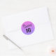 Dulce pegatina redonda de 16 con un purpurina lúgubre púrpura brillante con fondo y negrita escritura negra.
