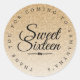 Un moderno pegatina o sello para sobres Sweet 16 presenta un patrón oscuro purpurina dorado y el texto "Sweet Sixteen" (Dieciséis Dulces) en caligrafía de escritura de moda manuscrita negra. Simplemente personalizar el pegatina de agradecimiento con tu nombre. Perfecto para un glamoroso dulce dieciséis, perfecto para ella, la modisto que ama el diseño moderno, brillante, lujoso y glam.