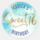 Pegatina Redonda Dulce 16 Turquesa acuarela Dorado Script Cumpleaño