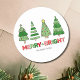 Desea a todos una muy Feliz Navidad con estas divertidas y coloridas pegatinas con tema de árbol de Navidad que presentan 'Merry & Bright' y 4 divertidos árboles de Navidad verdes. Puedes cambiar el nombre de tu familia o eliminarlo si lo prefieres. La paleta de colores incluye una mezcla alegre de rojos, rosas y tonos oscuros y claros de verde. Esta impresión encapsula la fantasía y la alegría de la temporada navideña. Pegatina redonda clásica personalizada divertida y colorida de árboles de Navidad rojos y rosados Merry And Bright.