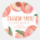 Pegatina Entre las hojas verdes pintadas en acuarela, los melocotones dulces están decorados con letras encantadoras y lindas.