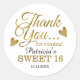 Dulces 16 cumpleaños gracias pegatinas con elegante tipografía de oro.