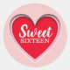 El corazón de amor rojo y rosado con las palabras "Dieciséis dulce"