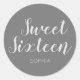 Pegatina Redonda Dulce Dieciséis elegantes y modernos gris y blanco