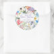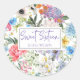 Dulce Dieciséis jardinería de flores Clásico Pegatina Redondo con flores de campo silvestre bonito en morado, lavanda, hojas verdes y más, con una tipografía de escritura cepillada sobre un elegante fondo editable.