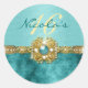 Pegatina Redonda "dulce dieciséis" oro verde azulado 16 cumpleaños