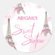Pegatina Redonda Dulce Dieciséis Torre Eiffel de París Blanco Rosa