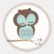 Un lindo búho de niño verde azulado perche azul en una delicada rama de flores en este pegatina muy dulce. Genial para cualquiera que ame a los búhos.