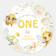 Dulce adorable para ser Pegatinas de un primer cumpleaños. El diseño presenta unas hermosas abejas color agua en medio de hermosos florales de primavera y verano, un falso purpurina de oro y una plantilla de personalizable. ¡Perfecto para las celebraciones de verano!