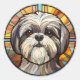 Pegatina Redonda Dulce Perro de Cristal Manchado Shih Tsu
