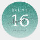 Pegatina Redonda Dulces 16 Brillo Verde Ombre Nombre Personalizado