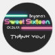 Pegatina Redonda DULCES 16 Dieciséis Fiesta Negra Resplandor Neon P
