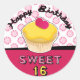 Pegatina Redonda ¡Dulces Dieciséis Pegatinas del pastel de cumpleañ