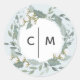 Pegatina Redonda Duste Blue Cotton Garden Wreath Monograma Boda