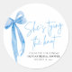 Pegatina Redonda Dusty Blue Bow está atando la ducha nupcial