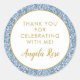 Purpurina del Periwinkle Dusty Blue Muted con etiqueta de texto de agradecimiento dorado y nombre, perfecto para una moderna ducha de bebé, mitzvah de murciélago, fiesta de cumpleaños, Quinceanera o ducha de novia. Purpurina es una imagen impresa - ¡no se usa ningún purpurina real y no hay lío! Visite la tienda de Papel Grape Zazzle para coordinar artículos de fiesta, papelería e invitaciones.