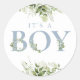 Pegatina Redonda Dusty Blue It A Boy Greeneration Floral Baby Showe
