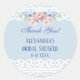 Añada un toque de elegancia a sus favores de ducha de novias con esta ducha de novia floral personalizada y romántica. Gracias Pegatina. Con hermosas flores azules polvorientas con delicada vegetación, junto con toronjas blancas y rosas suaves, este diseño es perfecto para una ducha floral femenina y sofisticada. El encaje blanco que se ve en un suave fondo azul polvoriento le da un toque romántico y atemporal. Si te gusta el estilo de decoración de Nancy Meyers, te encantará este encantador diseño que combina perfectamente elegancia y calidez. Este pegatina de agradecimiento es ideal para sellar bolsos de favores, regalos o tarjetas, ofreciendo un toque sincero a sus notas de agradecimiento. Una hermosa manera de expresar su gratitud a sus invitados en su vintage día de la ducha de novias.