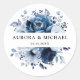 Pegatina Redonda Dusty Blue Slate Navy Boda Botánico Floral