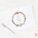 Elegant dusty pink floral round wedding sticker with watercolor roses for favors and envelopes.