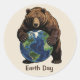 Pegatina Redonda Earth Day Bear Hugging Planet Design