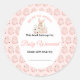 A charming Easter‑themed baby shower round sticker featuring a sweet bunny surrounded by soft pink floral eggs. The patterned background adds a festive spring feel, while the central layout keeps the event details clear and elegant. Perfect for celebrating a mom‑to‑be with an Easter twist, springtime palette, and gentle woodland charm.