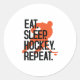 Pegatina Redonda Eat Sleep Hockey Repetir divertida hockey deportiv