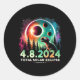 Pegatina Redonda Eclipse solar total Dinosaurio divertido con gafas
