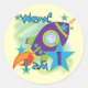 Pegatina Redonda Eco de cohetes camisetas de cumpleaños y regalos