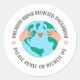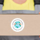 Show your commitment to sustainability with this eco-conscious packaging sticker. Featuring the message “Proudly using recycled packaging — please reuse or recycle. Eco shipping to help the planet” around the edge and a central illustration of the world in arms, this design communicates care for the environment while enhancing your packaging.