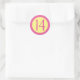Pegatina Redonda Edad 14 Número Personalizable Texto rosa en amaril