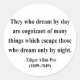 "Los que sueñan día a día son conscientes de muchas cosas que escapan a los que sueñan solamente de noche". - Edgar Allan Poe