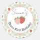 Pegatina Redonda Editable Strawberry Gingham 1st Birthday Favor
