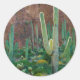 Pegatina Redonda EE.UU., Arizona. Saguaro Cactus Field Por Un Acant