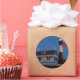 Pegatina Redonda EE.UU., Georgia, isla Tybee, bandera ondeando
