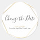 El boda del efecto oro geométrico cambia el pegatina de fecha. Boda Cambiar el pegatina de fechas. sello para sobres boda. Moderna geométrica de oro Cambia el pegatina de fecha para finalizar tus invitaciones y enviarlo a tus invitados. Este moderno Cambiar el pegatina de fechas muestra sus nombres y fecha boda con un borde geométrico de efecto oro moderno y "Cambiar la fecha" escrito en un guión elegante de color oro a juego. Puede cambiar los colores del texto para que se ajusten a su propio estilo. Tenga en cuenta que el efecto dorado está impreso.