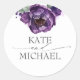 Pegatina Redonda Eggplant Purple Peony Elegant Watercolor