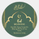 Pegatina Redonda Eid Mubarak Gold Arabic calligraphy Deep Green