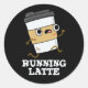 Pegatina Redonda Ejecutando Latte Funny Coffee Pun Dark BG