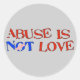 Las palabras rajadas e inclinadas explican "el abuso no es amor" con un vendaje sobre la letra "o" en "No". Recordatorio a los que les resulta imposible irse porque creen que su agresor los ama.