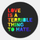 Pegatina Redonda El amor es algo terrible para odiar. La tipografía