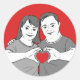 Síndrome de Down, abrazado lado a lado, romance de pareja, sonriendo y formando una forma de corazón con sus manos.