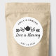 La boda diseñada por un personalizado favorece a los pegatinas/etiquetas redondeadas con el estilo romántico "El amor se está preparando" con escritura cepillada a mano. Personaliza con los nombres de novias y novios/parejas y la fecha de boda para un toque de estilo en los favores y regalos de té boda.