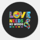 Pegatina Redonda El amor no necesita palabras ASL Autism Awareness